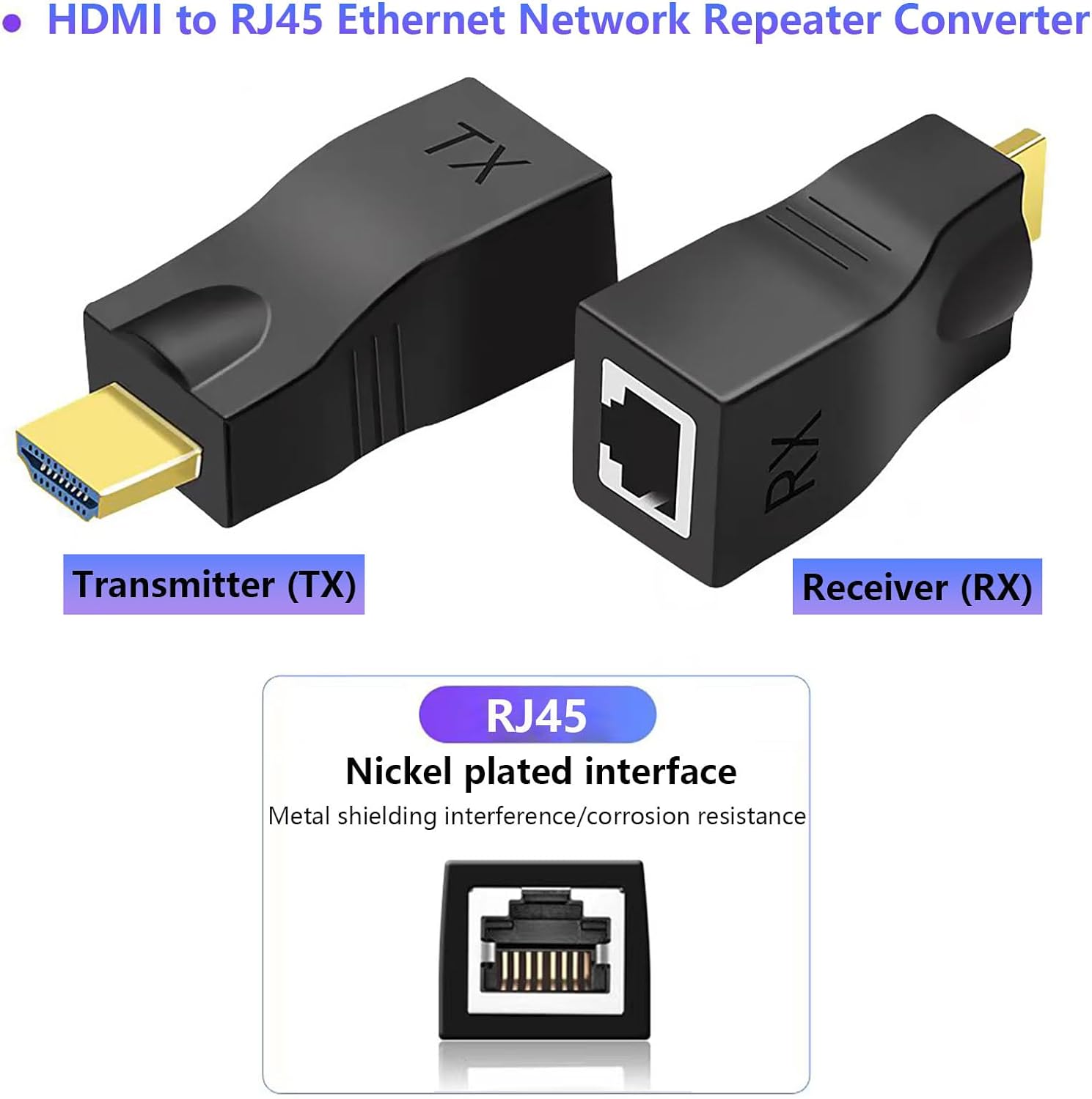 Hdmi Extender Over Ethernet Cat 6/ 7/ 8 Cable, HDMI to RJ45 Ethernet Network Converter, Support Audio Video 1080P UP to 98FT(30m), Suitable for HDTV, Computer, Set Top Box, PS3 4, Projector, Monitor