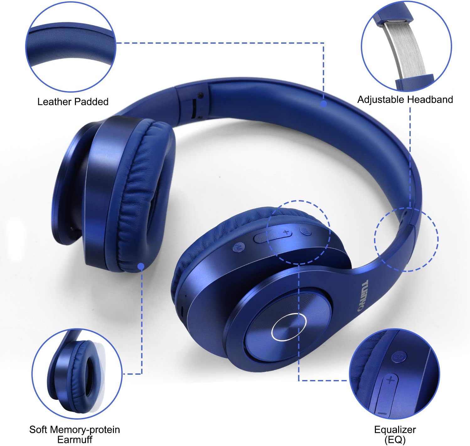 TUINYO Bluetooth Headphones Wireless, Over Ear Stereo Wireless Headset 40H Playtime with deep bass, Soft Memory-Protein Earmuffs, Built-in Mic Wired Mode PC/Cell Phones/TV-Dark Blue …